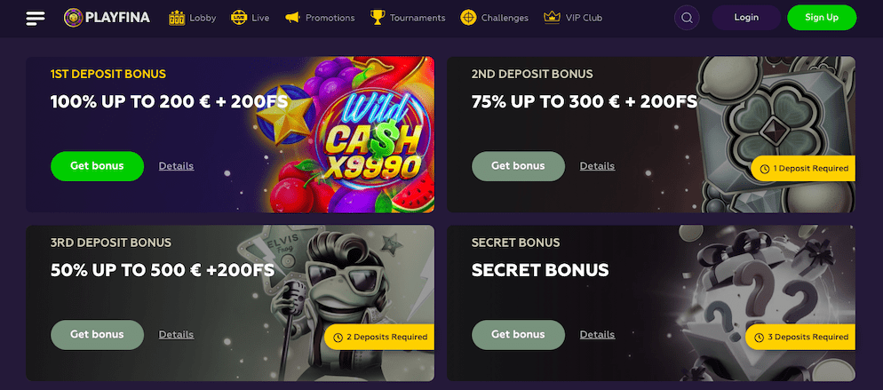 Aside from the initial no deposit sign-up bonus, Playfina keeps players engaged and entertained by regularly offering special promotions and bonus opportunities. These promotions can vary from reload bonuses to cashback offers, free spins bonuses, and much more. By keeping an eye on the promotions page and subscribing to Playfina's newsletter, players can ensure that they never miss out on these exciting offers. These promotions not only enhance the gameplay experience but also provide players with additional chances to win and maximize their winnings.