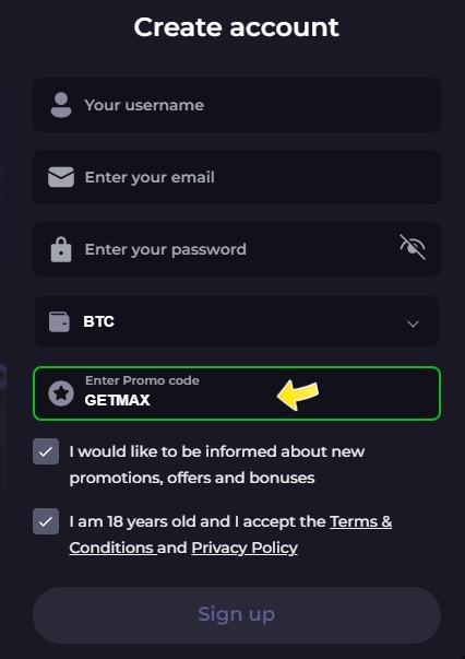 Step 1: Sign up for an account at Playfina Casino.