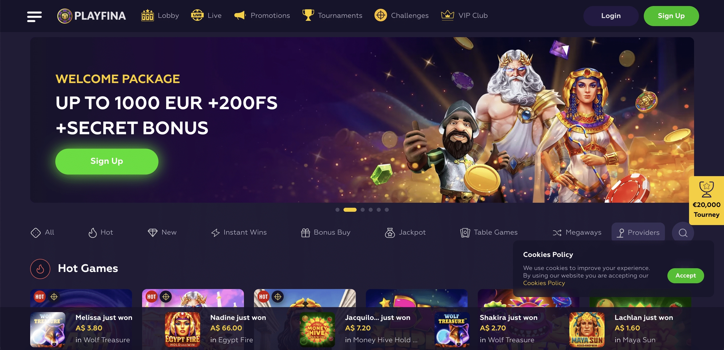 More than 11,000 slots, all varieties of blackjack, dozens of roulette games, craps, video poker, and other games are available to you at Playfina casino online Exploring Playfina's Community Features - Unveiling the Social Dimension! Play the Best Online Casino Games at Playfina ✓ Try Slots, Blackjack, Roulette, Craps and Video Poker with Huge Bonuses. Playfina Casino How to Start Up to 1000€ + 200 FS + Secret Bonus... Playfina Casino - Bonus Codes – 50 Free Spins!